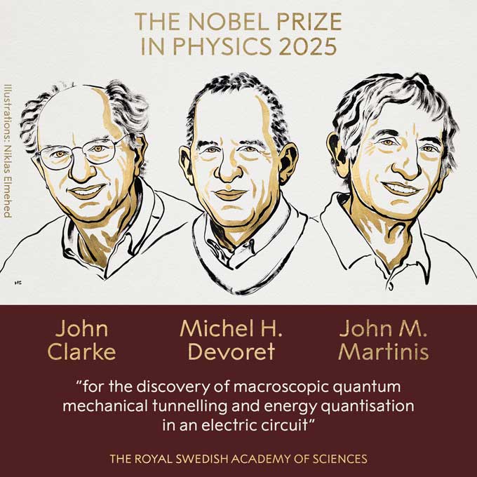 Le prix Nobel de physique 2025 a été attribué au Français Michel Devoret, professeur à l’Université de Yale, au Britannique John Clarke et à l’Américain John Martinis. L’annonce a été faite mardi par l’organisme responsable de la remise des prix. Cette récompense souligne l’importance de leurs travaux sur la mécanique quantique macroscopique.