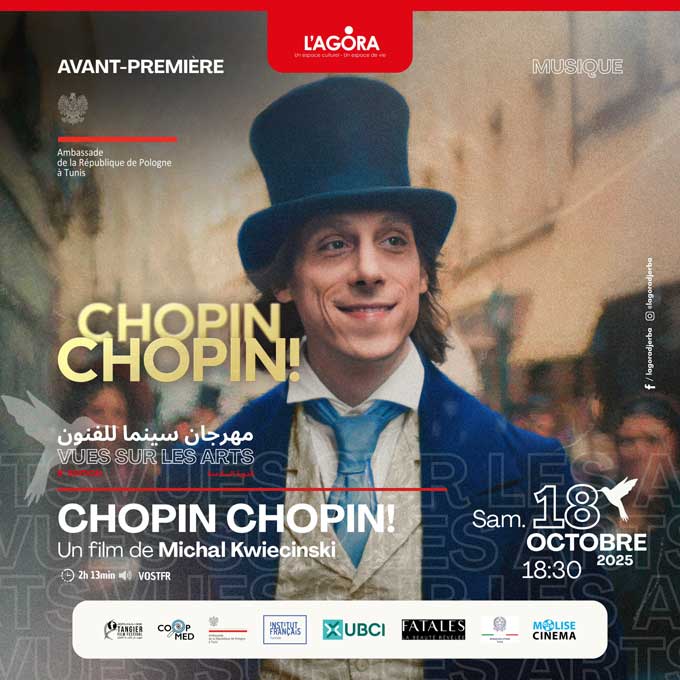 La 6ème édition festival “Vues sur les Arts” dévoile les grandes lignes de son programme de 2025 à l’Agora La Marsa et Djerba avec la projection de trois films inédits et en avant-première, une section dédiée aux courts métrages tunisiens, une Master Class, un atelier d’écriture, un Festi-court et une section Focus Iran.