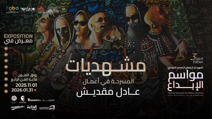 Cette exposition, qui a démarré le 1ᵉʳ novembre 2025 se poursuivra jusqu’au 31 janvier 2026, à la Salle Le 4ème Art à Tunis, est une initiative du Théâtre National Tunisien (TNT), en collaboration avec le Musée National d’Art Moderne et Contemporain (MACAM), dans le cadre de la 3ème édition du Festival National du Théâtre Tunisien “Saisons de la Création” (du 24 octobre au 8 novembre 2025).