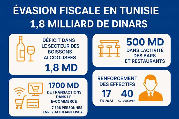 Au-delà des boissons alcoolisées, la brigade enquête également sur le commerce électronique, estimé à 1 700 MD, avec 7 596 personnes identifiées comme exerçant sans identifiant fiscal. Les investigations couvrent aussi les cliniques privées, médecins, grossistes en médicaments, concessionnaires automobiles, grandes surfaces et assurances.