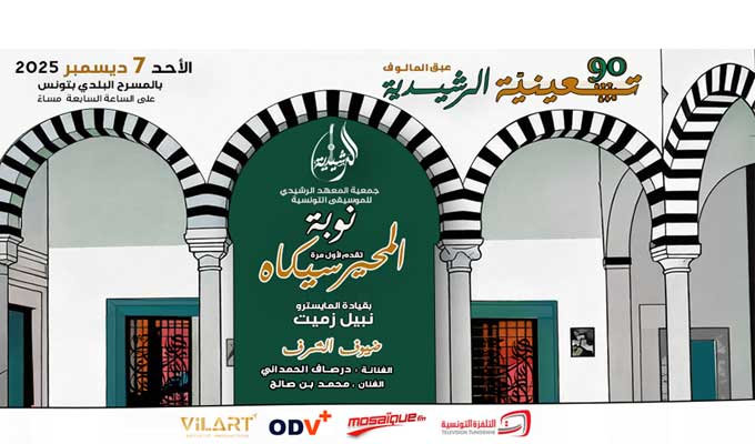 Le dimanche 7 décembre, à 19h00, le Théâtre Municipal de Tunis présentera le concert “Nuba al-Muhayar Sikah”, avec les artistes Dorsaf Hamdani et Mohamed Ben Salah, sous la direction du maestro Nabil Zommit.
