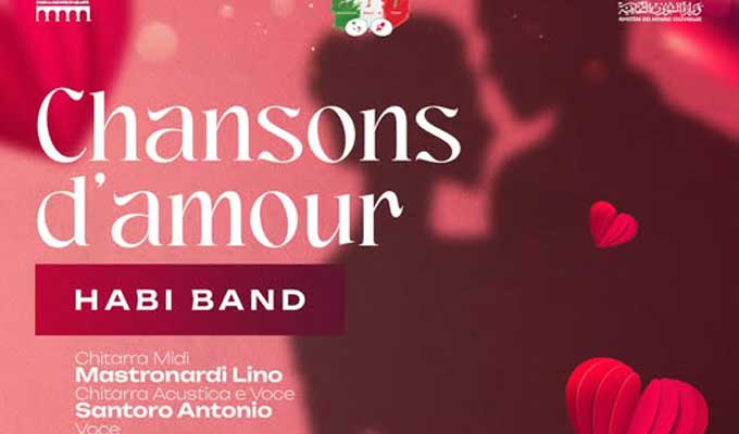 Le Centre Culturel International de Hammamet (CCIH) -Maison de la Méditerranée pour la Culture et les Arts-, en collaboration avec l’Association Italienne de Tunisie, organise le 14 février 2026 à 17h30 une soirée musicale intitulée “Chansons d’amour”.