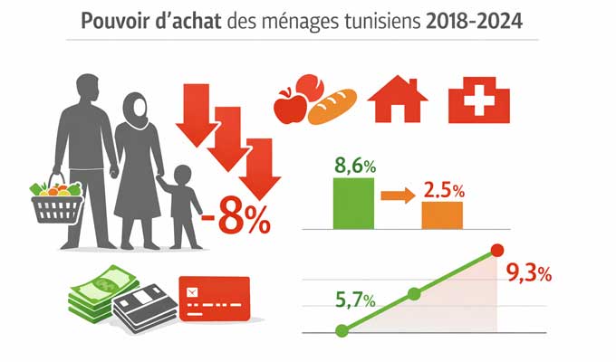 Dans cette note intitulée “L’amélioration du pouvoir d’achat des ménages”, l’Institut a précisé que les ménages salariés subissent encore plus cette baisse, car le taux d’inflation a augmenté plus rapidement que les salaires unitaires versés aux ménages, notamment au cours de la période 2018-2024 où l’inflation a dépassé le niveau historique inférieur ou égal à 5% par an, pour se situer ente 5,7 et 9,3% en moyenne annuelle, alors que les clauses d’augmentation des salaires négociées se limitent à la moyenne historique de 5% par an. Cet écart, d’environ 2 points en moyenne par an en défaveur des salaires et qui a duré 7 ans, soit 14% au total, a pesé lourdement sur le pouvoir d’achat des ménages qui se limitent aux salaires comme source de revenu.