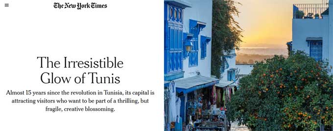 Le quotidien américain souligne aussi l’attrait de sites patrimoniaux encore relativement peu fréquentés, tels que le Musée du Bardo et les ruines de Carthage, qui complètent le portrait d’une ville « brute et sans prétention », où « chacun crée quelque chose » : un café, une ligne de vêtements ou une exposition.