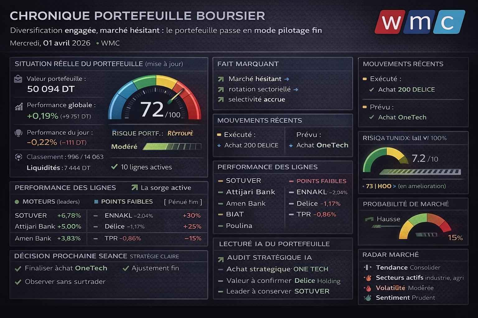 - Performance : Portefeuille à 50 094 DT (+0,19% global).