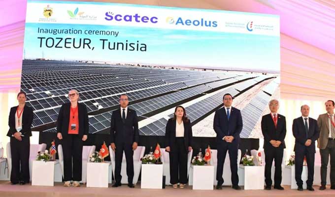 La centrale solaire de Tozeur, qui est entrée en phase d’exploitation et raccordée au réseau de la STEG, s’étend sur une superficie de 100 hectares et alimente en électricité environ 40 000 habitants.