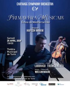 Ce concert est organisé par l’association Musique Sans Frontières en collaboration avec l’Institut Culturel Italien de Tunis avec le soutien de l’Office National du Tourisme Tunisien, indiquent les organisateurs.