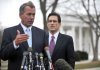 ésident de la Chambre des représentants, le Républicain John Boehner (G) et le leader de la majorité républicaine à la Chambre Eric Cantor, le...