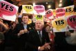 étaire d'Etat irlandais aux Affaires européennes Dick Roche, fête le oui au traité de Lisbonne, le 3 octobre 2009 à Dublin. (Photo : Peter...