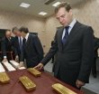 ésident russe Medvedev observe des lingots d'or dans une usine de Magadan le 24 septembre 2008 en Russie (Photo : Dmitry Astakhov) MOSCOU (AFP)...