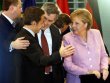 àD) Le président français Nicolas Sarkozy, le Premier ministre britannique Gordon Brown et la chancelière allemande Angela Merkel, le 22 février 2009 à Berlin...