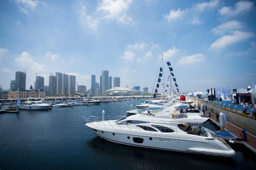Des yachts de luxe dans le port de la ville chinoise de Dalian, le 5 juillet 2014 (Photo : Johannes Eisele) Shanghai (AFP)...