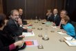 ésidente du Medef Laurence Parisot (D) et le secrétaire général de la CFDT François Chérèque posent avant une rencontre au siège du MEDEF à...