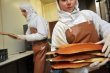 Une hôtesse de Singapore Airlines passe devant une affiche annonçant le 1er vol d'Airbus A380 à l'aéroport de...