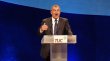 étaire général de la confédération syndicale britannique TUC, Brendan Barber, à la tribune du congrès de son organisation, le 13 septembre 2010 à Manchester...