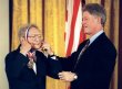 économiste et prix Nobel Paul Samuelson décoré le 26 juillet 1996 par Bill Clinton, alors président des Etats-Unis WASHINGTON (AFP) L'économiste Paul Samuelson, premier...