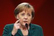 à Rheinstetten, près de Karlsruhe, durant un congrès du syndicat IG Metall (Photo : Franziska Kraufmann) BERLIN (AFP) La chancelière allemande Angela Merkel a...