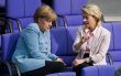 ère allemande Angela Merkel (G) et la ministre du Travail Ursula von der Leyen au Bundestag à Berlin, le 30 juin 2011 (Photo :...