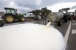 Les tracteurs arrivent pour un épandage géant de lait près du Mont St-Michel
