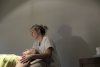 Une femme, accompagnée de ses deux enfants, communique avec son mari via internet (Photo : François Nascimbeni) PARIS...