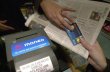 ète un journal en payant avec le système Monéo intégré dans sa carte bancaire, en 2002 à Caen (Photo : Mychele Daniau) PARIS (AFP)...