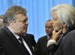 énérale du FMI Christine Lagarde (D) et le ministre grec des Finances Evangelos Venizelos, le 21 octobre 2011 à Bruxelles (Photo : Georges Gobet)...