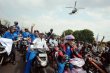 élicoptère de la police, pour réclamer des hausses de salaire, le 27 janvier 20012. JAKARTA (AFP) Les ouvriers indonésiens multiplient les actions spectaculaires pour...