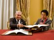 énéral du FMI Dominique Strauss-Kahn et le ministre des finances du Japon, Shoichi Nakagawa, signent un accord à Rome, le 13 février 2009...