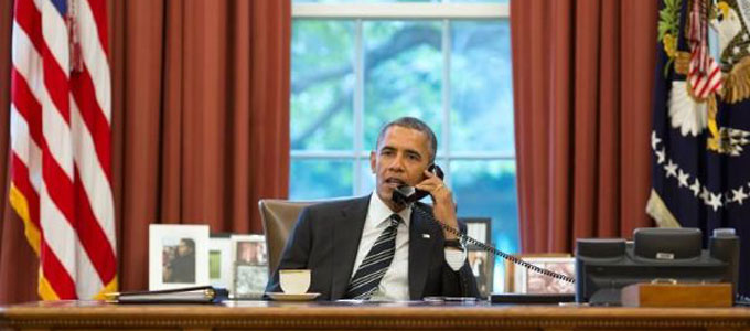 ée par la Maison Blanche le 27 septembre 2013 du président Barack Obama en conversation téléphonique avec son homologue iranien, Hassan Rohani (Photo :...