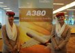 ôtesses d'Emirates le 15 juillet 2010 à l'aséroport de New Delhi (Photo : Raveendran) DUBAI (AFP) Emirates, le plus gros client de l'A380, a...