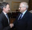 étaire d'Etat américain Tim Geithner (G) et son homologue allemand Rainer Bruderle, le 1 er février 2010 ZURICH (AFP) Après l'évasion fiscale, le ministre...
