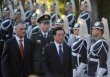 ésident chinois Hu Jintao (D) et son homologue portugais Anibal Cavaco Silva devant le palais présidentiel à Lisbonne, le 6 novembre 2010 (Photo :...