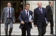 Nicolas Sarkozy (C), le ministre délégué à l'Aménagement du Territoire Christian Estrosi (G), le ministre délégué à l'Industrie...