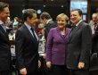 ésident Nicolas Sarkozy, la chancelière allemande Angela Merkel et le président de la commission européenne Jose Manuel Barroso le 9 décembre 2011 à Bruxelles...