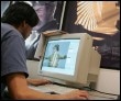Une personne travaille dans les locaux d'éditeur de jeux vidéo français, le 12 octobre 2005 (Photo : Thomas...