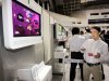 CHERBOURG (AFP) édéric Mitterrand observe de l'installation de chaînes numériques sur une télé, à Octeville-l'Avenelle (Cotentin) le 18 novembre 2009. (Photo : Mychele...