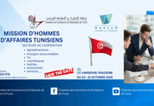 La Chambre de Commerce et d’Industrie de Tunis (CCIT) organise une mission d’hommes d’affaires tunisiens, du 20 au 23 octobre 2025, à Varsovie(Pologne).