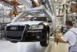 à une Audi A8 dans l'usine d'assemblage de Nerckarsulm (Allemagne), le 19 avril 2007 (Photo : Michael Latz)...