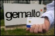 Une personne montre une carte à puce devant l'usine de Gemalto à Saint-Cyr-en-Val, le 7 Juin 2007...