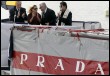 Patrizio Bertelli (2ed) et sa femme Miuccia Prada sur le yacht Luna Rossa le 18 janvier 2007 à...