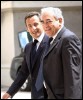 Dominique Strauss-Kahn, candidat de l'Union européenne à la direction générale du FMI, accueilli à l'Elysée par Nicolas Sarkozy,...
