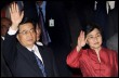 Le président chinois Hu Jintao (g) et son épouse Liu Yongquing lors de leur arrivée à New Delhi,...