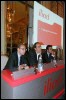 Le fondateur d'Iliad, Xavier Niel (c), le directeur financier Olivier Rosenfeld (g) et le directeur général du groupe...
