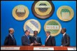 Le directeur général du FMI, Rodrigo Rato (2e G), aux côtés d'autres dirigeants du FMI et du président...