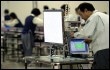 Un homme travaille sur un écran plasma Matsushita à Ibaraki au Japon, en décembre 2004 (Photo : Toshifumi...