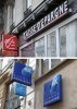 éé le 6 octobre 2008 des logos de la Caisse d'Epargne et de la Banque Populaire à Paris. (Photo : Stephane de Sakutin) PARIS...