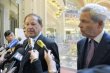 étaire d'Etat chargé du Commerce, Hervé Novelli (G), en compagnie de Philippe Houzé, président du groupe Galeries Lafayette, lors d'une visite dans ce grand...