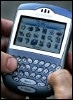 Un homme d'affaires utilise son Blackberry, le 10 février 2006 à Washington (Photo : Paul J. Richards) NEW...