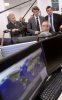 çois Baroin (C) visite le 17 mai 2010 à Paris les locaux de Cyberdouane, à la Direction nationale du renseignement et des enquêtes douanières...