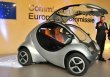 ésident de la Commission européenne José Manuel Barroso avec la voiture électrique pliable Hiriko le 24 janvier 2012 à Bruxelles (Photo : Georges Gobet)...